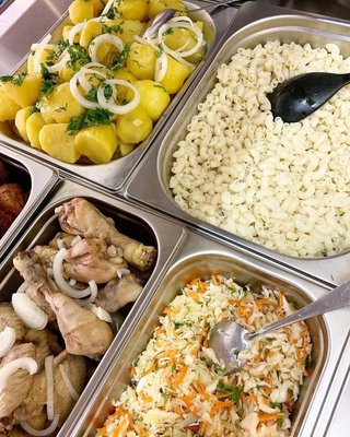 Кухня предоставлена в общее пользование. Кроме того, возможна доставка продуктов в номер. Есть буфет, подходящий для детей.
