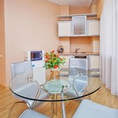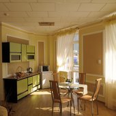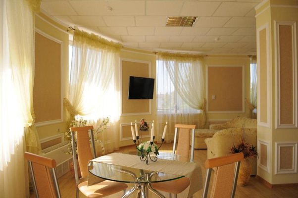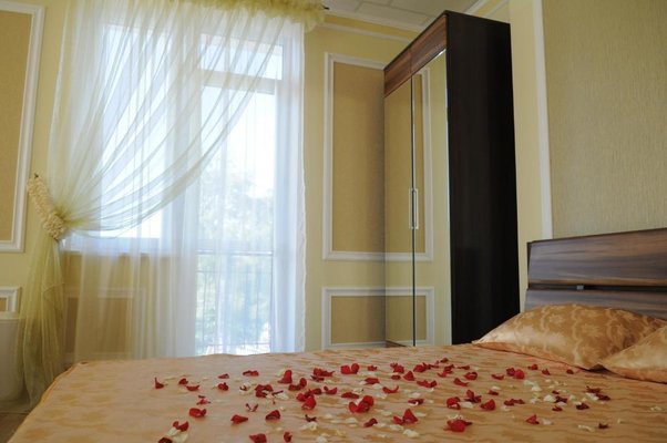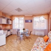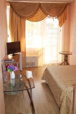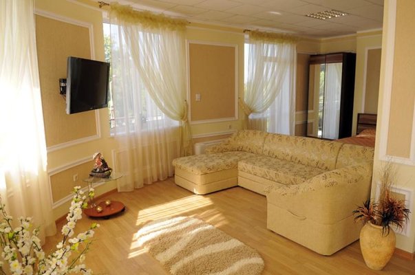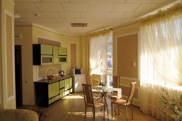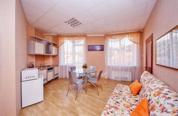 Номерной фонд дома представлен 16 современными категориями: двухместный и трехместный «стандарт», «семейный люкс». Каждый из номеров оснащен эргономичной мебелью, телевизором, кондиционером, холодильником. Есть выход на балкон и собственная ванная комната. Люкс включает в себя спальню и гостиную, в которой имеется встроенный кухонный гарнитур для самостоятельного приготовления пищи.