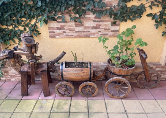 На территории гостевого дома также есть четыре отдельно стоящих коттеджа класса «полу-люкс» и «комфорт». Коттеджи класса «полу-люкс» выполнены из блоков и включают три отдельных номера, а коттеджи класса «комфорт» — из деревянного бруса в эко-стиле и также вмещают три отдельных номера.