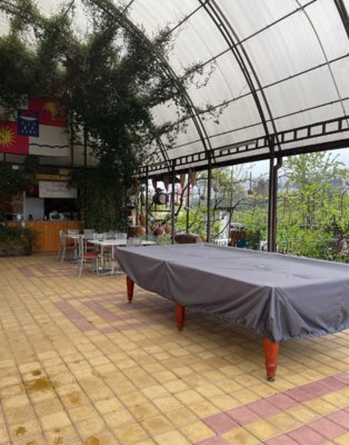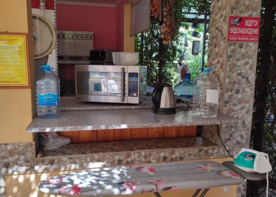 На территории гостевого дома есть кухня, где гости могут приготовить пищу самостоятельно, предоставляются микроволновая печь и чайник. Также во дворе есть зона для отдыха, отдельная зона для мангала, бесплатный теннисный стол, бильярд, бадминтон, нарды, шашки и шахматы. Предоставляются стиральные машины.
