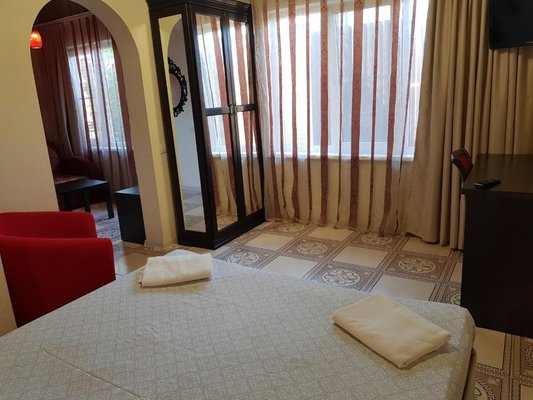 Самый лучший отель в Геленджике. Прекрасные хозяева, отличное обслуживание. Отдых для семьи с детками. По деньгам тоже не плохое предложение. На территории имеется детская площадка, бассейн, батут, столовая,