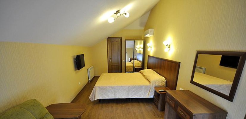 В номерном фонде гостевого дома обустроено 19 уютных номеров. Они оформлены в светлых тонах. Наличие необходимой мебели и техники сделает Ваш отдых более комфортным. По предварительному запросу возможно заселение с домашними животными. На территории открыт доступ к бесплатной сети Wi-Fi.