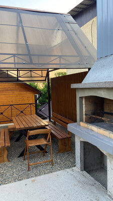 На территории гостевого дома есть банный чан, зона для мангала с каменными грилями, общая кухня с полным набором бытовой техники, а также предоставляется бесплатный Wi-Fi. Всего в 300 метрах от дома расположен галечный пляж бухты Михайловской, где можно насладиться морским воздухом и пляжными прогулками.
