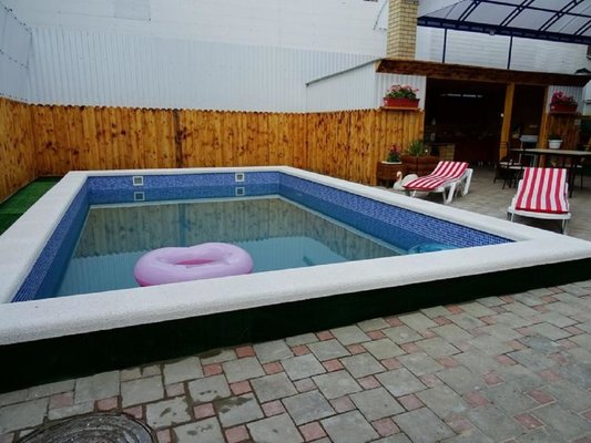 На территории расположен открытый бассейн с подогревом. Вокруг бассейна оборудована просторная зона отдыха с шезлонгами для загара.