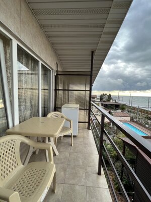 Гостевой дом находится на первой линии, с потрясающим видом на море, открывающимся с балконов каждого номера.