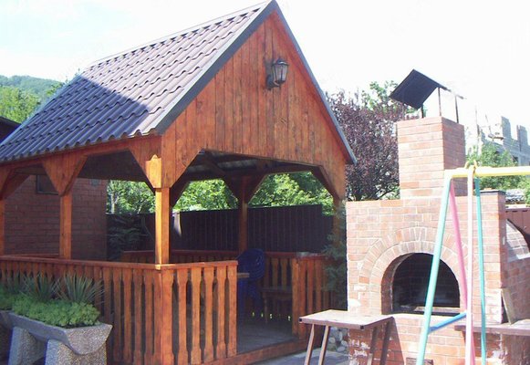 На террасе установлен мангал. Гости смогут самостоятельно организовать себе питание на общей кухне, а также есть небольшое кафе.
