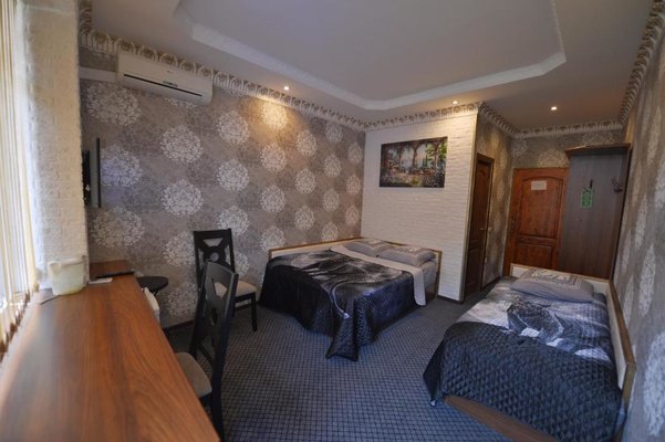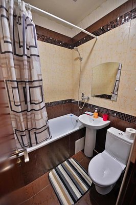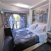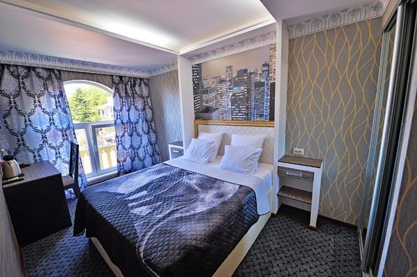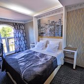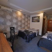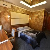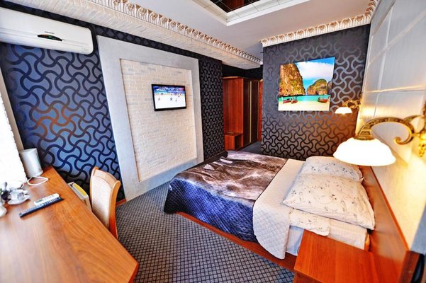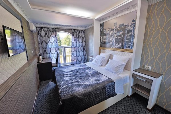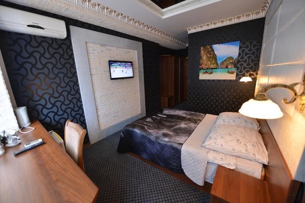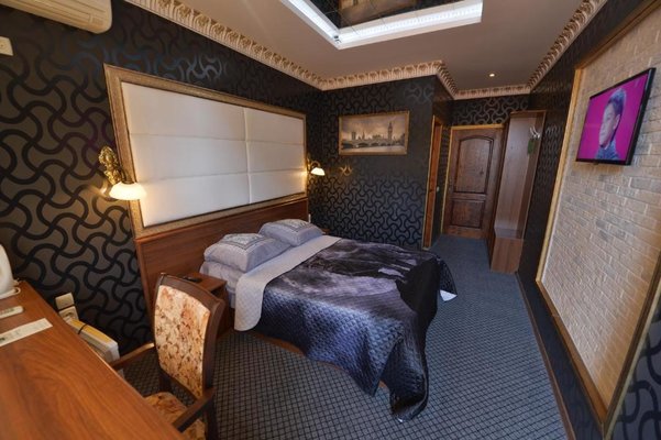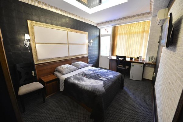 Светлые номера оформлены в классическом стиле в теплых тонах и оснащены кондиционером. В каждом номере установлен телевизор с плоским экраном, холодильник, сейф, есть балкон и собственная ванна комната.