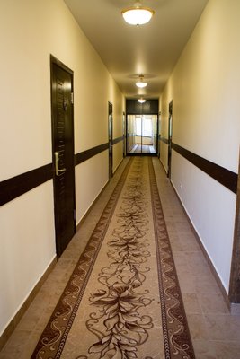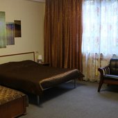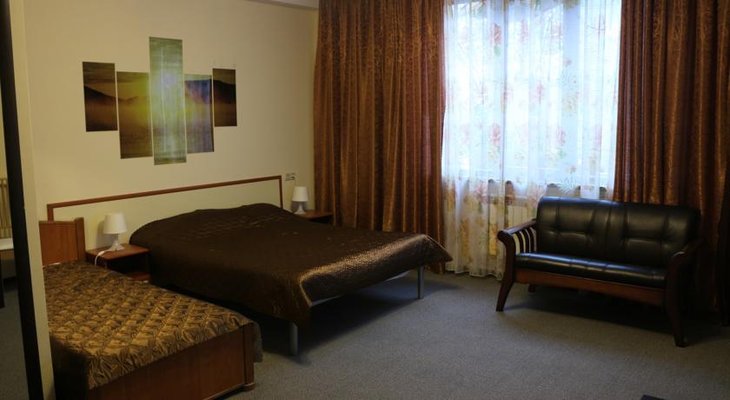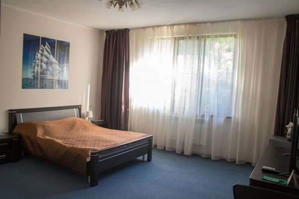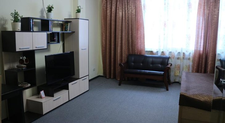 Номера Гостевого дома оборудованы двуспальными и односпальными кроватями, шкафами и тумбами, сплит-системами, плоскими телевизорами, холодильниками, чайниками, душевыми комнатами, фенами. На этаже есть стиральная машина и гладильная система, которыми можно воспользоваться самостоятельно.