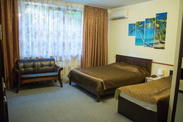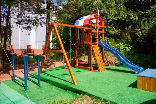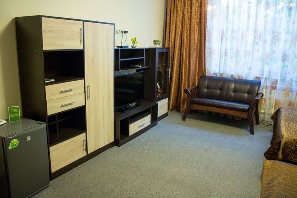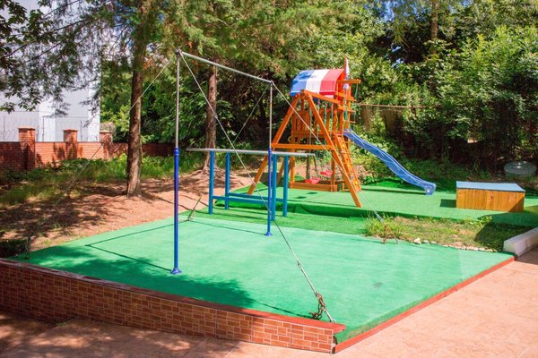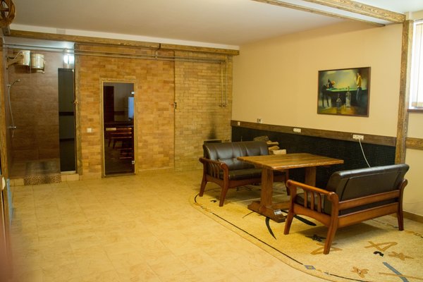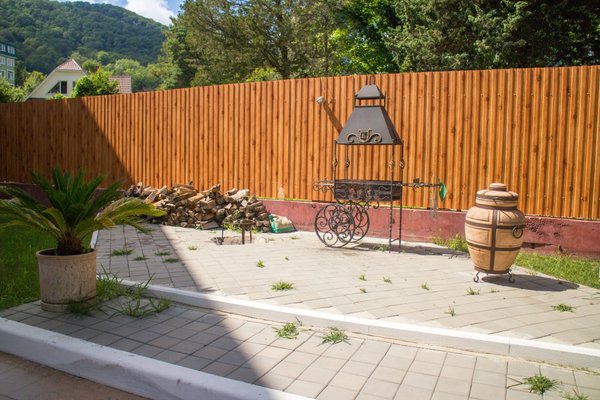 Территория Гостевого дома закрытая, доступ осуществляется по ключ-карте. Внутренний двор оборудован беседкой с мангалом, детской площадкой, душем с минеральной водой с сероводородом, В гостинице предусмотрен бесплатный wi-fi в номерах. Также гостевом доме есть русская баня на дровах и бильярдный зал.