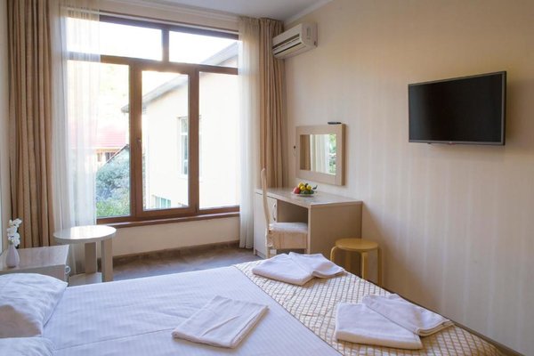 Номера выполненные в светлом стиле заставят почувствовать отдыхающих атмосферу уюта и комфорта. Здесь есть все необходимое для комфортного проживания. Ванная оснащена стандартным набором сантехники со встроенным феном, прилагаются свежие полотенца и бесплатные гигиенические принадлежности.