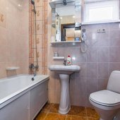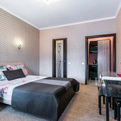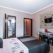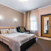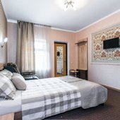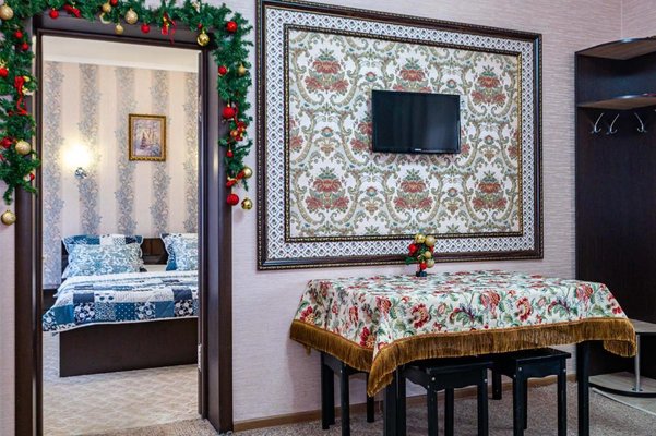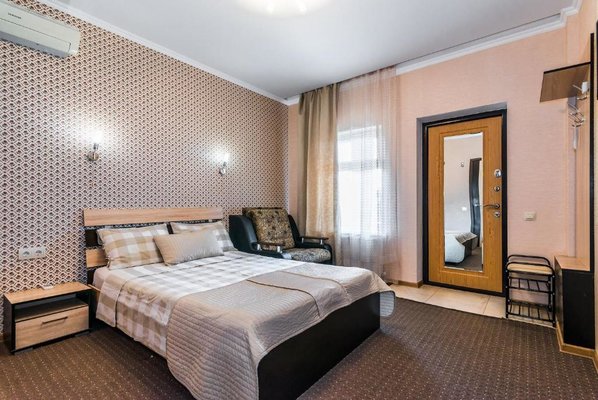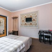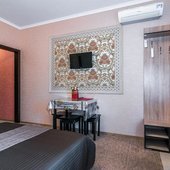 Просторные номера выполнены в едином стиле, установлена эргономичная мебель и современные телевизоры, а так же кондиционеры. В ванной комнате есть набор сантехники, полотенца и фен.