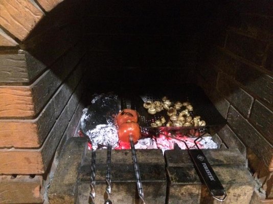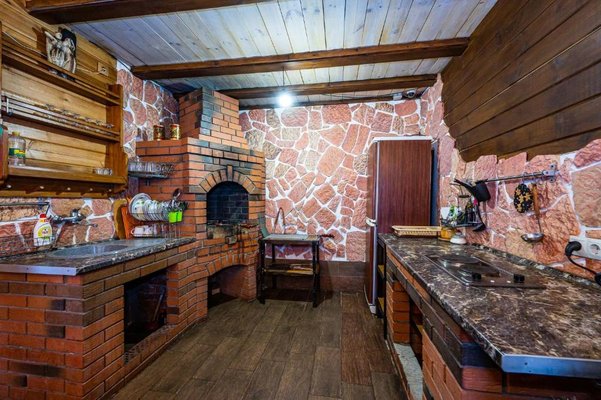 На свежем воздухе обустроена мангальная зона, где отдыхающие могут приготовить блюда на гриле. Продукты возможно приобрести в ближайших минимаркетах или на рынке.