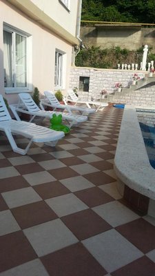 Отдохнули мы просто замечательно! Хозяева - настоящие душки: открытые, доброжелательные люди, всегда готовые помочь с любым вопросом. Номера чистые, уютные, с кондиционером и телевизором. Место тихое и спокойное, идеальное для отдыха. Бассейн - просто мечта! Чистый, с подсветкой ночью, достаточно большой. Несмотря на ступеньки (для нас они не были проблемой), до моря всего 15 минут ходьбы.