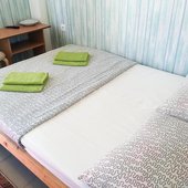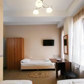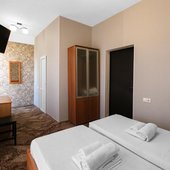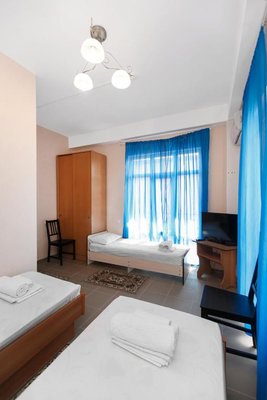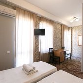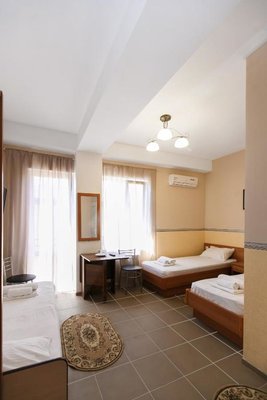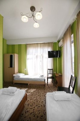Интерьер номеров выполнен в классическом стиле. В пользовании гостей холодильник, сплит-система и телевизор. Некоторые комнаты имеют выход на балкон. На первом этаже расположена столовая с буфетом. В шаговой доступности расположен песчаный пляж с шезлонгами для загара. Вблизи отеля расположен рынок, торговый центр и аквапарк.