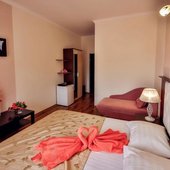 Интерьер оформлен в классическом стиле, выполнен современный ремонт, приятная цветовая гамма радует глаза. В просторных номерах созданы все необходимые условия для полноценного размещения и комфортного проживания. В распоряжении отдыхающих будет: кондиционер, телевизор с плоским экраном, кабельное телевидение, прикроватные тумбочки, журнальный столик.