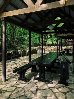 Отличное место. Попался уютный домик и, конечно же, потрясающая беседка. В беседке есть камин, караоке и просторный стол для большой компании. Мангал для готовки, удобства на высоте. Влажная парная в бане очень понравилась, и каньон оказался необычайно красивым. Ресторан порадовал вкусной форелью, приготовленной на углях в фольге. Хочу выразить благодарность гостеприимной хозяйке Ирине за замечательный отдых. Прокатились также на квадриках, техника в хорошем состоянии. Соотношение цены и качества на высшем уровне – рекомендую!