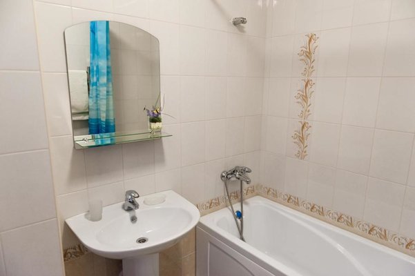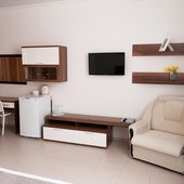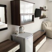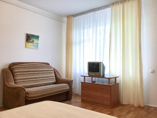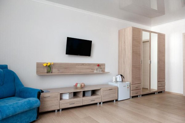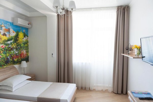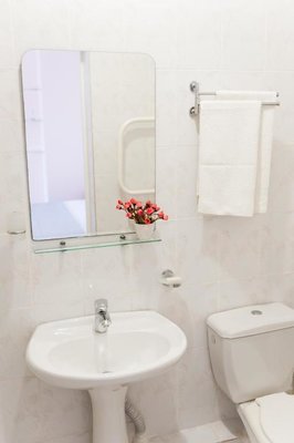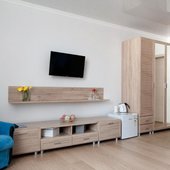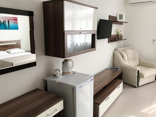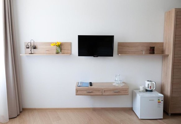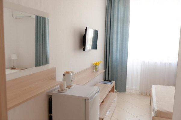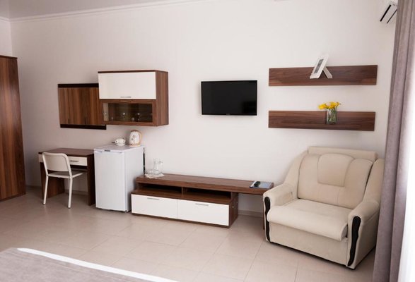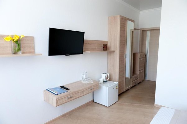 Номера оформлены в светлых тонах и оснащены кондиционером и телевизором. В ванной комнате с феном предоставляются бесплатные туалетно-косметические принадлежности.