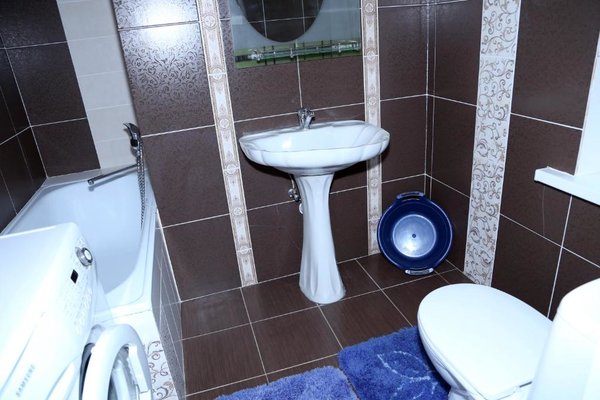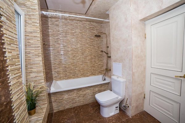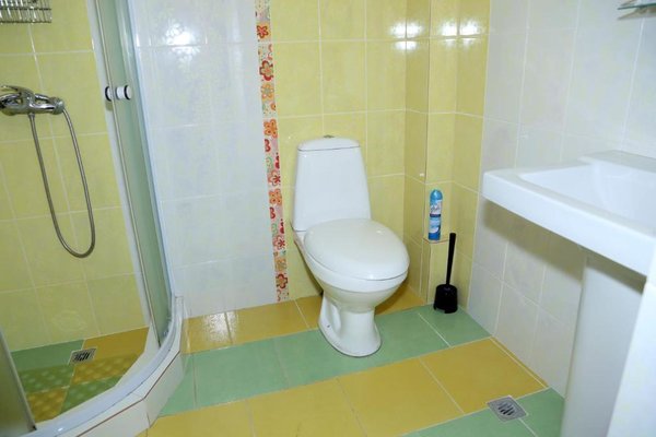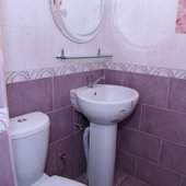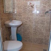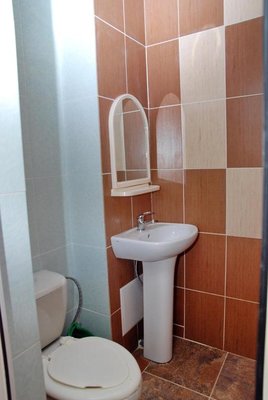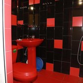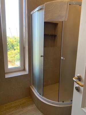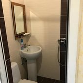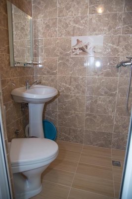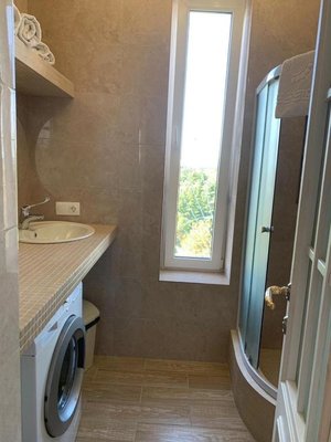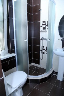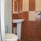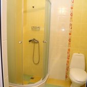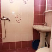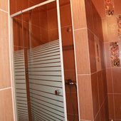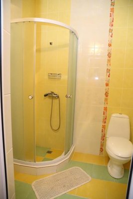 Конструкция душа так себе, из-за чего вся ванная комната заливается водой, хотя даже есть шторки (но их надо обновить).