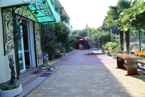 Месторасположения отеля удачное. Близко море и аквапарк. Дворик уютный, хотя и небольшой. Есть летняя кухня, где гости самостоятельно могут готовить все, что им нужно. Стирка платная, но недорогая. По дороге к морю есть хорошее кафе, где вкусно готовят.