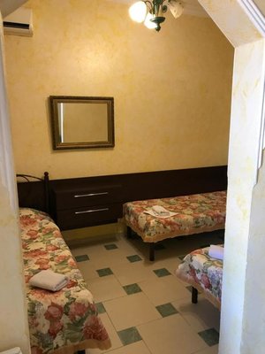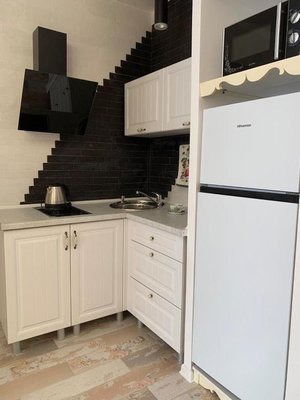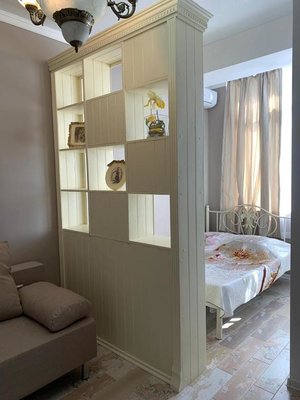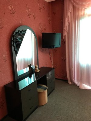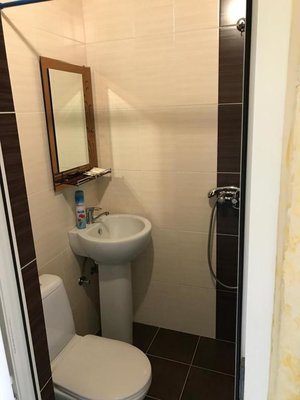 Мало каналов в телевизоре. Санузел совсем маленький, нет душевой кабины. До моря надо идти около 15 минут. Подушки крайне неудобные, спать на них нереально. Расположение выключателей света странное.