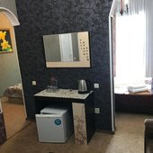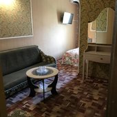 Двухместный номер действительно большой и комфортный. Есть зонирование на «гостиную» и «спальню». На ресепшене выдают фен, можно воспользоваться утюгом или гладильной доской. Балкон шикарный, но в номере было шумно. Вход в столовую со двора отеля, не надо далеко ходить. Блюда достаточно вкусные.