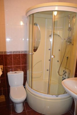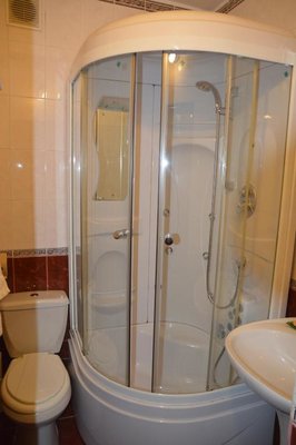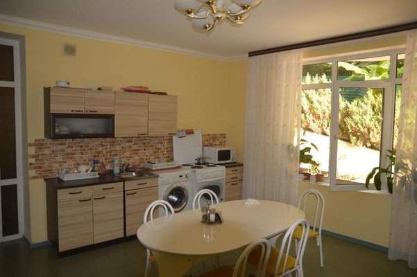 На общей кухне, отдыхающие готовят себе самостоятельно. Имеется самая необходимая техника: газовая плита, духовка, микроволновая печь, электрический чайник и посуда.