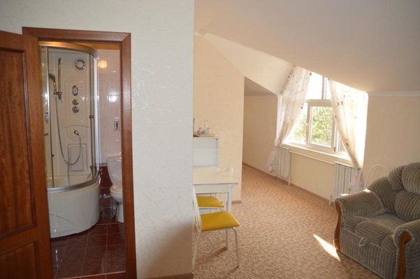 На всей территории дома доступен беспроводной доступ в интернет. В некоторых номерах имеется свой балкон. Интерьер комнат выполнен в светлых классических тонах, что придает уют и комфорт номеру.
