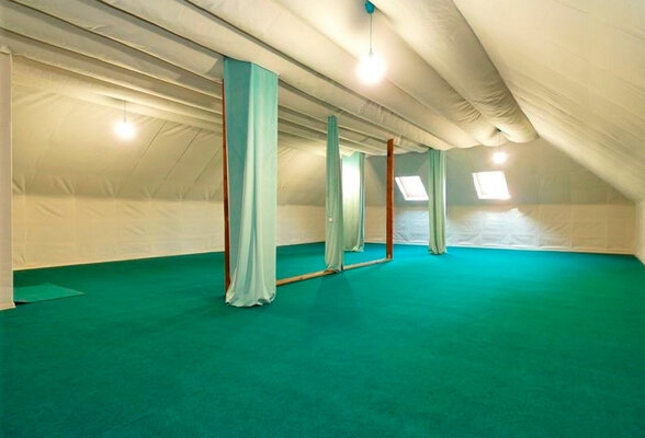 На первом этаже имеется оборудованный спортивный зал. Так же в здании есть просторный зал площадью 150 м2 с мягким ковровым покрытием, хорошей шумоизоляцией и сплит системой.
