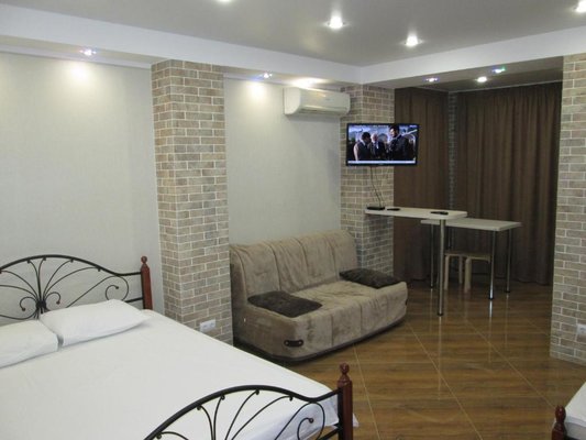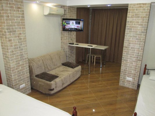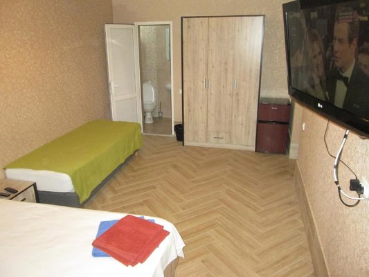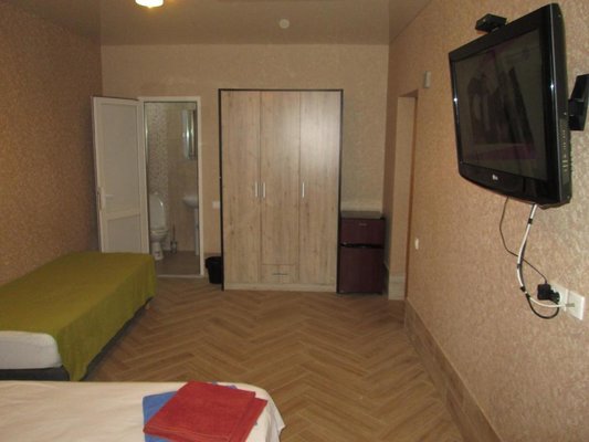 Номера гостевого дома оснащены телевизором с плоским экраном. Во всех номерах в числе удобств холодильник.