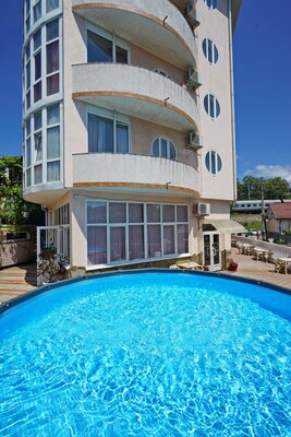 Всего в пяти минутах ходьбы расположен отмеченный «Голубым Флагом» галечный пляж «Багратион». Рядом с гостевым домом есть кафе, магазины и развлечения, включая парк аттракционов, аквапарк «Наутилус» и яхтенный причал.