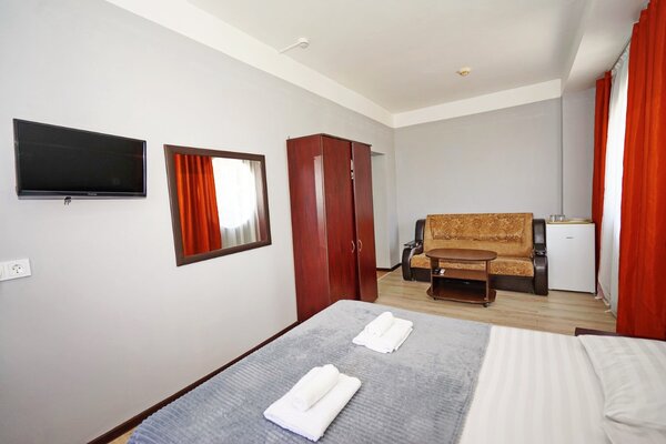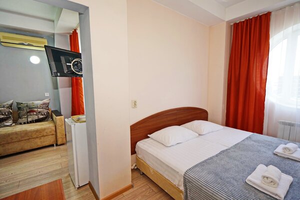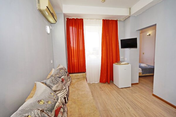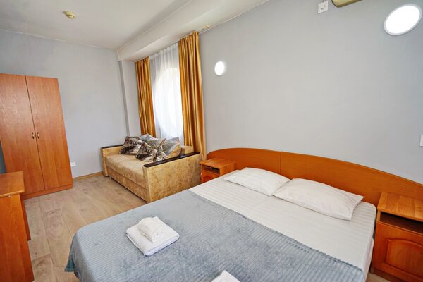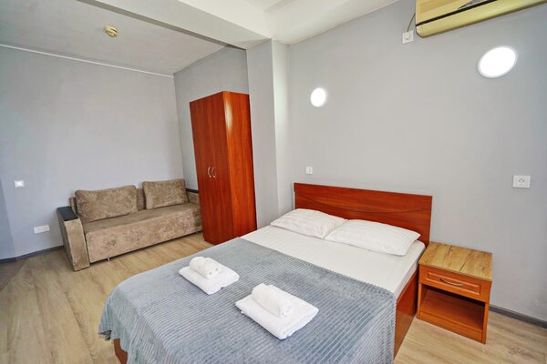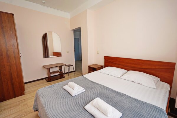 Гостевой дом «Виктория» предлагает комфортное размещение в номерах на 2-4 человека, включая семейные апартаменты с двумя комнатами. В каждом номере есть все необходимое для приятного отдыха: санузел, телевизор, холодильник, кондиционер и балкон с мебелью. Уборка проводится регулярно, постельное белье и полотенца меняются каждые пять дней.
