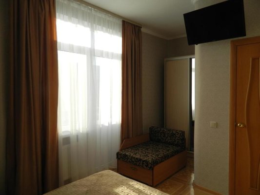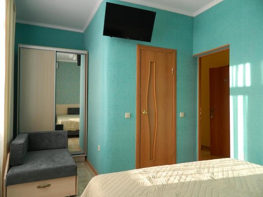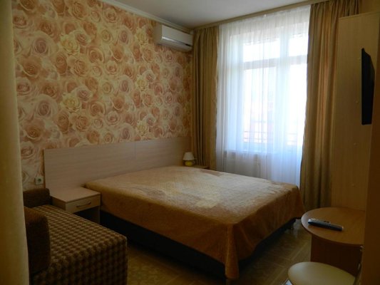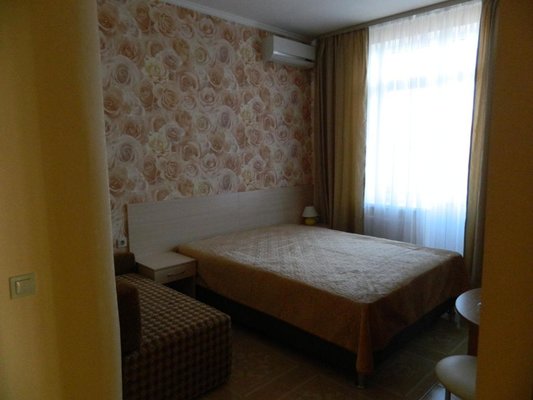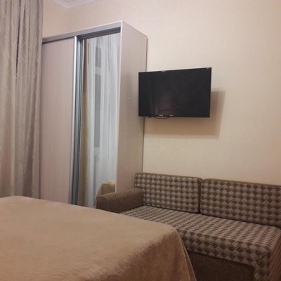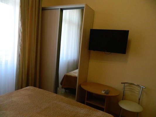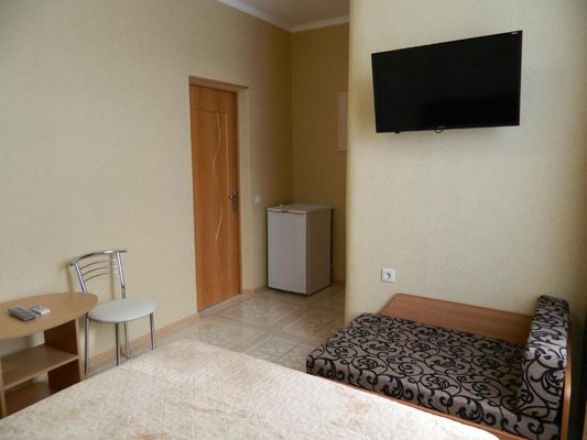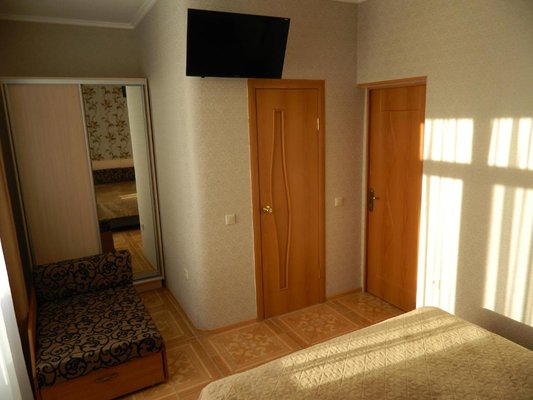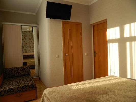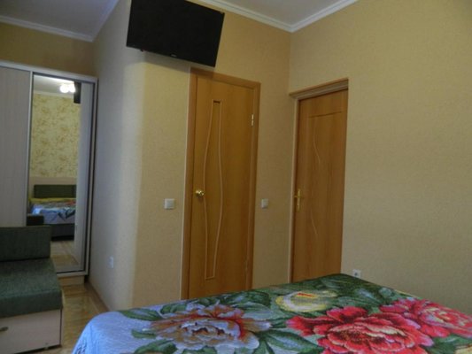 Дизайн интерьера оформлен в едином лаконичном стиле, сделан современный ремонт. В просторных комнатах созданы все необходимые условия для полноценного размещения и проживания. В распоряжении отдыхающих будет: кондиционер, телевизор с плоским экраном, холодильник, шкаф для одежды, прикроватные тумбочки, стол, стулья.