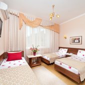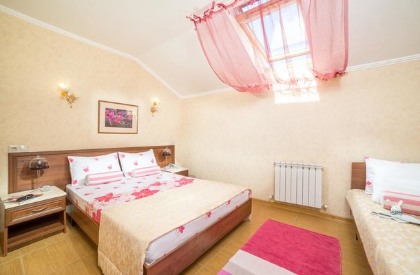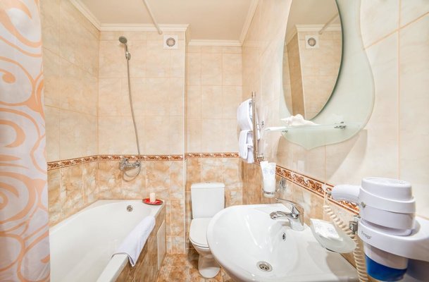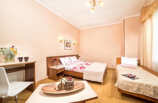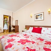 Гостям предлагается размещение в светлых кондиционированных номерах, оформленных в теплой цветовой гамме в классическом стиле. Все номера располагают телевизором с плоским экраном, холодильником и собственной ванной комнатой.