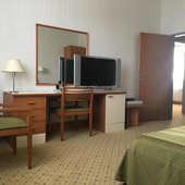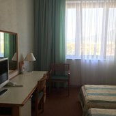 Пребывали летом в гостинице Каравелла. Цены были там не очень дорогие за сутки . Вкусную еду можно было заказать в номер. Внутри очень понравилось все сделано для клиента и его удобства. Номера большие удобные. Чисто и уютно. В номере комфортно находится и главное спокойно. Есть ванна и туалет. В ванной комнате как положено лежат белые чистые новые халаты, тапочки...