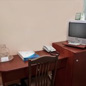 Впечатление резко отрицательное. 1. Обстановка Мебель в номере старье все чиненое, затертое. Стулья новые - отмечу. Все остальное по принципу - "Так и шоб вы цдохли гости дорогие". Телевизор с диагональю 21 см. Хорошо хоть...