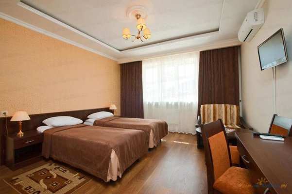 Останавливались в данном отеле на два дня проездом. Находится он напротив рынка и аквапарка. Итак обо всём по порядку 1. Номера Очень чистые убранные номера всё новое и работает исправно. LCD телевизор холодильник сейф в ванной фен. Удобная двухспальная кровать, но за такие деньги хотелось бы ванну, а здесь душевая кабина тоже не плохая. Из окна вид на аквапарк...