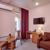 В 5 минутах ходьбы находится вокзал, где в любое время года останавливаются не только поезда дальнего следования, но и электрички «Ласточка», которые строго по расписанию готовы отвезти вас в Аэропорт, на Красную Поляну и Олимпийский Парк, значительно экономя Ваше время. Рядом с отелем находятся теннисные корты, почтовое отделение, торговые ряды, детские аттракционы, рынки, кафе, бары и ночные клубы.