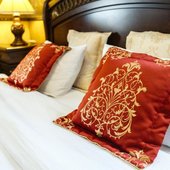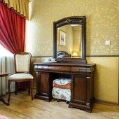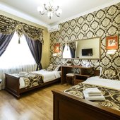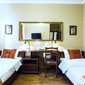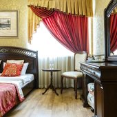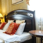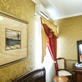 Номерной фонд представлен уютными номерами, выполненными в классическом стиле и укомплектованными всем необходимым. Предусмотрена удобная и практичная мебель, сплит-система, холодильник, новая сантехника.