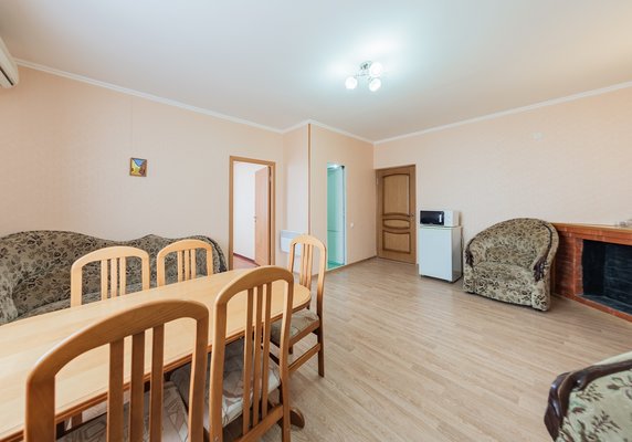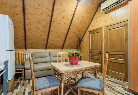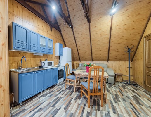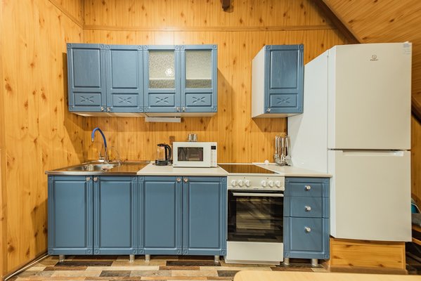 Вы можете приготовить пищу на собственной кухне, в которой есть плита, холодильник и микроволновка. Вместительный обеденный стол предназначен для всей семьи.
