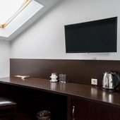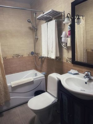 Номера оснащены чайником. В каждом из них обустроена собственная ванная комната. В числе удобств халаты и тапочки. Кроме того, в номерах установлен телевизор с плоским экраном.