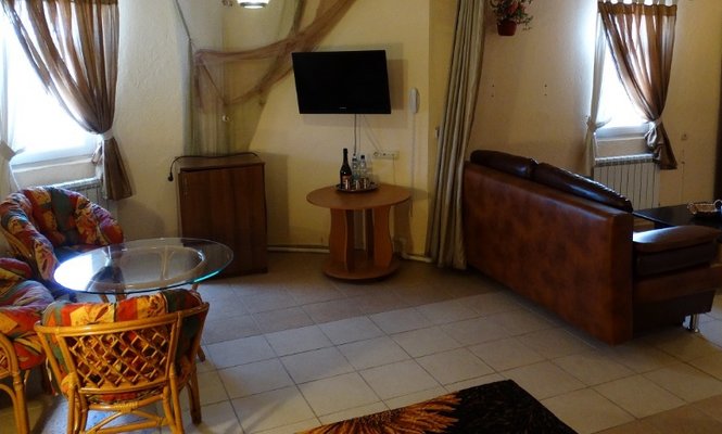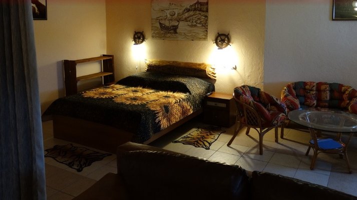 Отель расположился на берегу Таманского залива Черного моря, на который открывается вид из окон номеров. Во всех номерах имеется. санузел с душем, кондиционер, телевизор, сейф, мини-бар. В ряде номеров возможно размещение дополнительных мест.