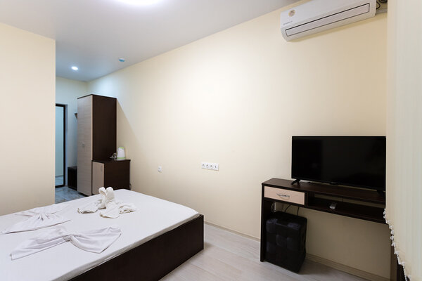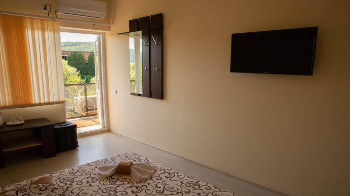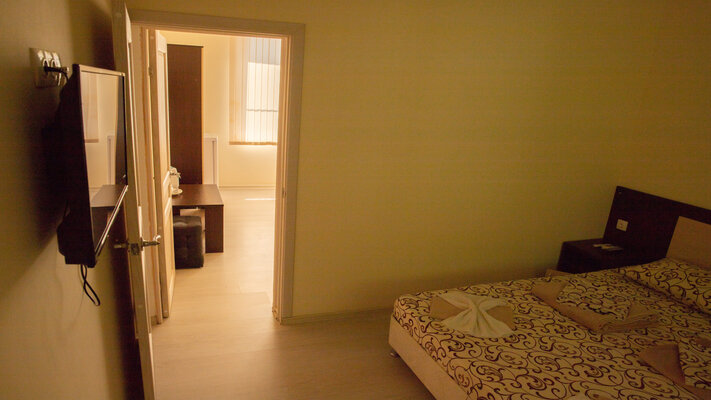 Пятиэтажный корпус отеля на тихой улице Парковая предлагает гостям комфортабельные двух- и трехместные номера стандарт. В каждом номере есть: собственный санузел с душем или ванной, кондиционер, телевизор, в некоторых номерах — балкон с панорамным видом на горы