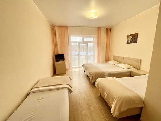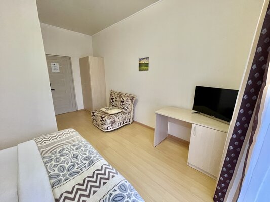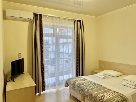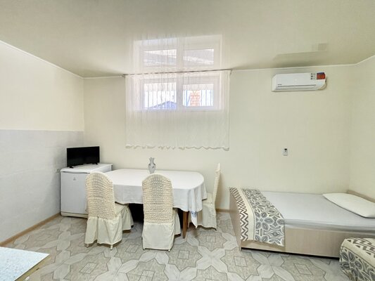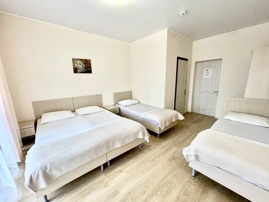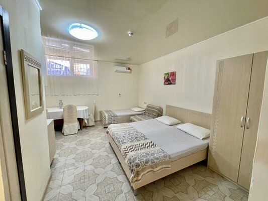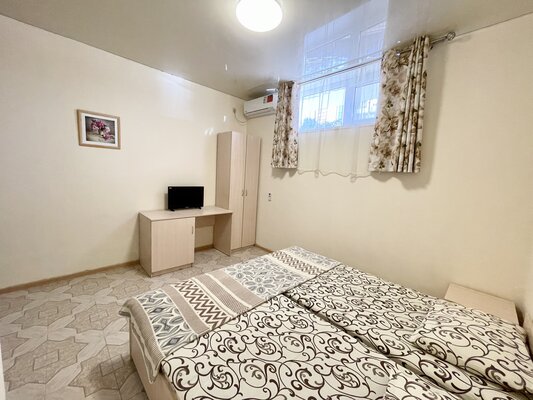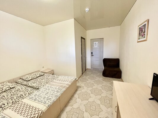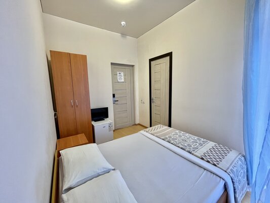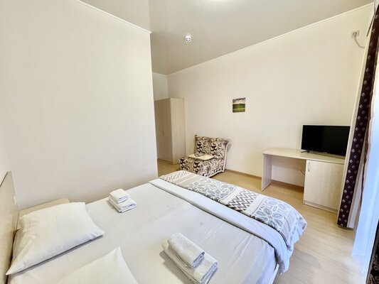 Двухэтажный кирпичный отель предлагает номера различных категорий — от бюджетных вариантов в цокольном этаже до просторных Апартаментов с собственной кухней. В каждом номере есть сплит-система, собственный санузел, ЖК-телевизор, набор чайной посуды.