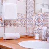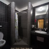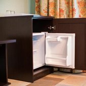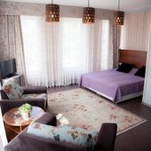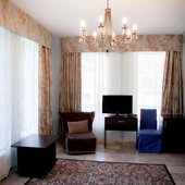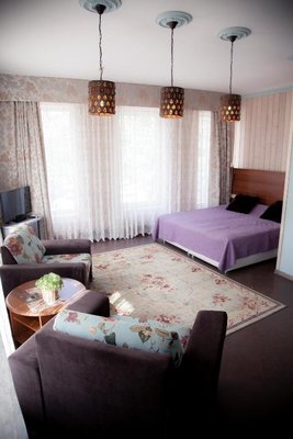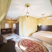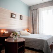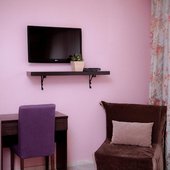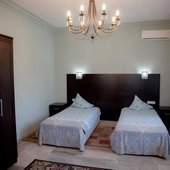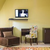 Светлые номера оборудованы кондиционером и оформлены в классическом стиле в теплых тонах. В каждом из них установлен телевизор и холодильник. В распоряжении гостей собственная ванная комната.