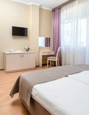 Доброжелательный персонал, чистота, всё новое, большие номера, большая лоджия, море недалеко, через дорогу церковь, всё включено -завтрак, обед и ужин.