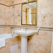 Хорошая сантехника, новая. Неплохая кухня, отзывчивый персонал на ресепшене, удобное расположение, до моря недалёко.