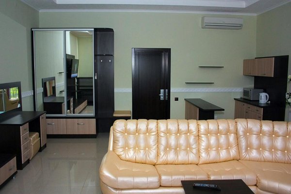 В распоряжении отеля находится 12 просторных и уютных номеров. Все они имеют современный дизайн и оборудованы новой, удобной мебелью, а также телевизором, кондиционером, микроволновой печью и холодильником. Из номеров категории «люкс» открывается прекрасный вид на море или горы.