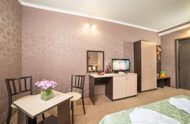 Все номера оформлены в классическом стиле и оснащены кондиционерами. В числе удобств — балкон, телевизор и холодильник, а также собственная ванная комната с ванной, феном и бесплатными туалетно-косметическими принадлежностями.