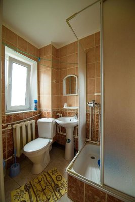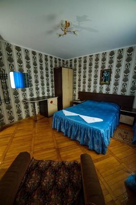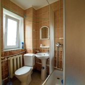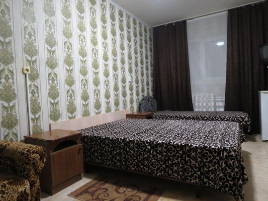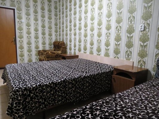 В каждом номере есть шкаф, телевизор и собственная ванная комната.