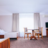 Светлые номера отеля Bridge Congress & Conference обставлены деревянной мебелью и оснащены кондиционером. В собственной ванной комнате предоставляются туалетно-косметические принадлежности и фен.